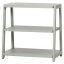 軽快なシルエットの棚板3段のロータイプオープンシェルフです。工場用シェルフの構造を踏襲した設計の為、各段10kgの耐荷重を誇ります。