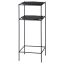 細く伸びた鉄棒をベースとしたシンプルで統一感のあるデザインの省スペース家具シリーズです。植木鉢を置くプランツスタンドや消毒液スタンド、リビングやダイニングでのラックとしてなど、様々な用途でご活用いただけます。棚板は2枚付属しており、3段階で高さが変えられます。丸い棚板がかわいらしい印象です。
